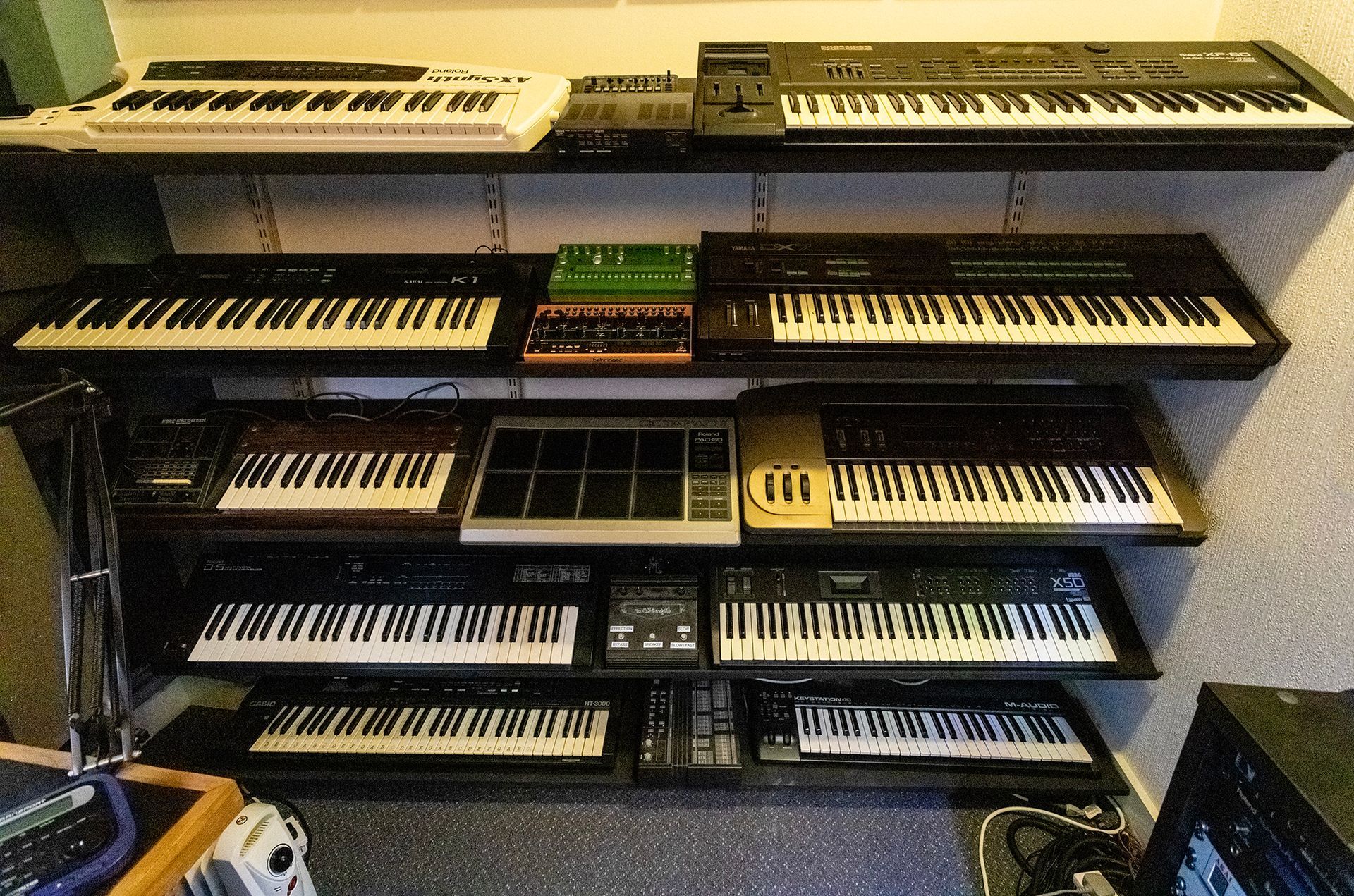 Studio Three is for sound creation running Cubase 14 Pro. With over 50 hardware keyboards, sound modules and samplers. and hundreds of software keyboards. It also has a huge sound FX library. And thousands of sounds and samples. Playback is handled by SSL audio interface and Dynaudio monitors.