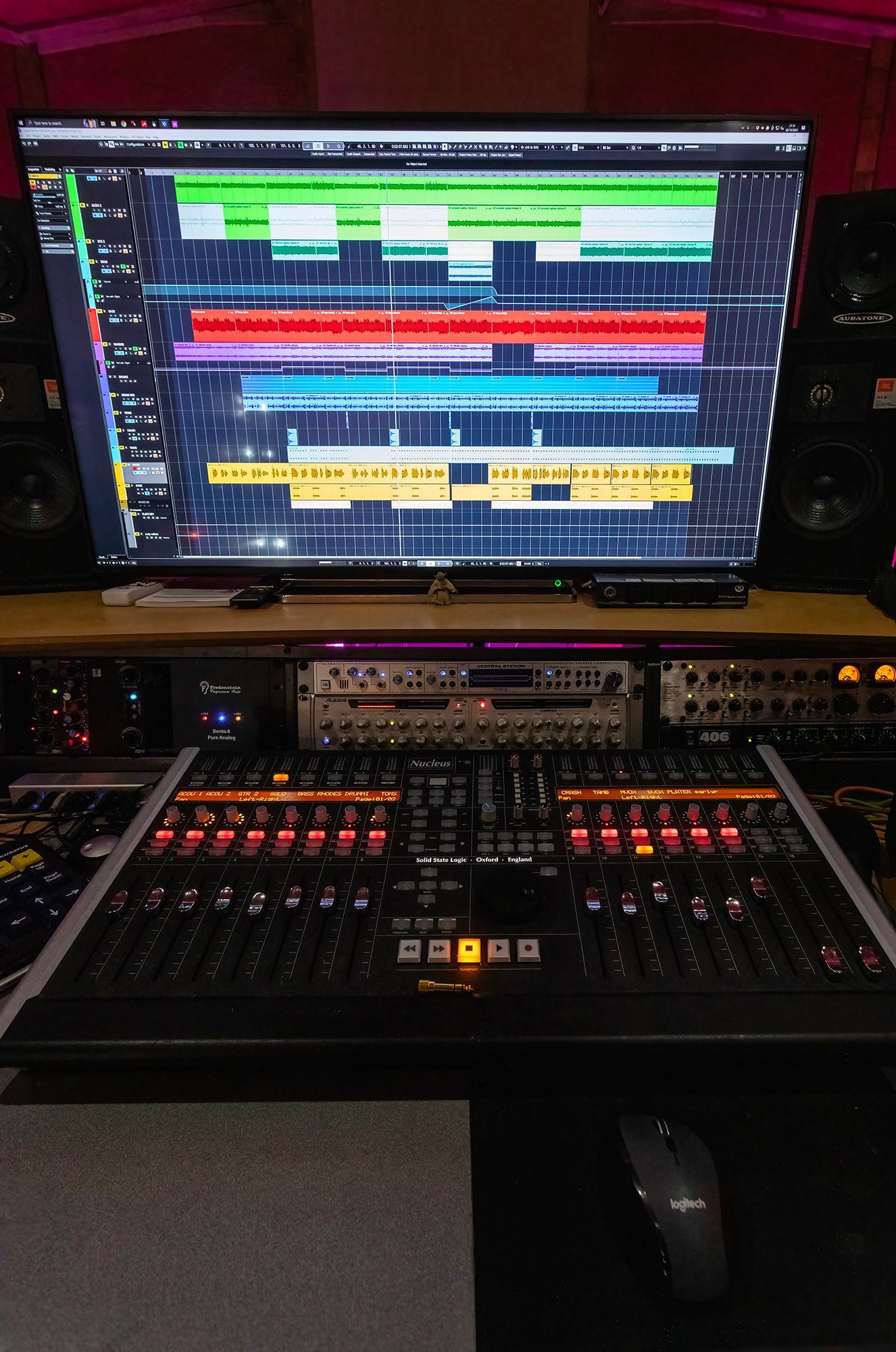 Studio Two is Computer based running Cubase 14 Pro and Pro Tools. With SSL nucleus DAW mixer, Adam SX3 monitors and Intel i9 24 core computer system linked to our server for sample storage and access to studio One. It’s the ideal facility for music creation, production and mixing.