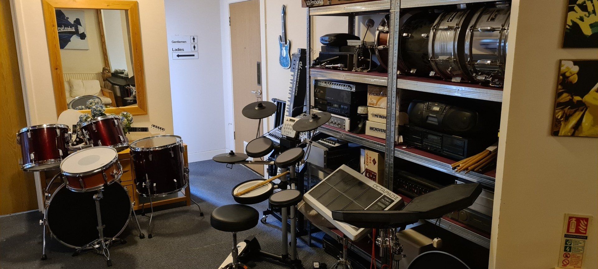 Horizontal Music Studios is built within a large detached converted church, using well tried 'room within a room' techniques. The live room, isolation room and the control room are all built on independent floating floors, with professional acoustic treatment.